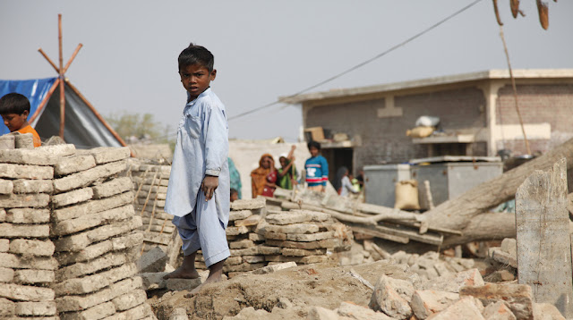 Photo Credit: A child stands amongst buildings destroyed by the floods in Sindh province, courtesy of flickr user DFID – UK Department for International Development.