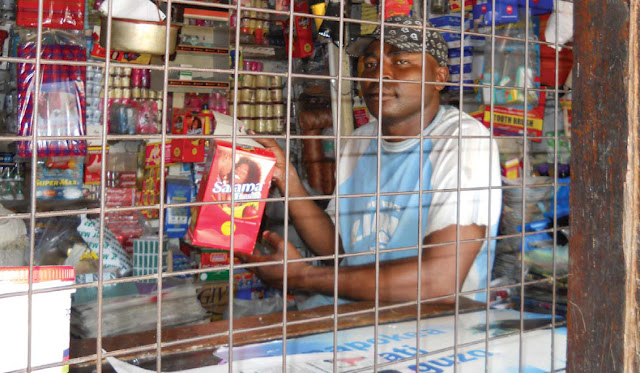 Photo Credit: Abdalah showing a box of condoms for sale in his small shop by Juma Dyegula, courtesy of the BALANCED Project. -