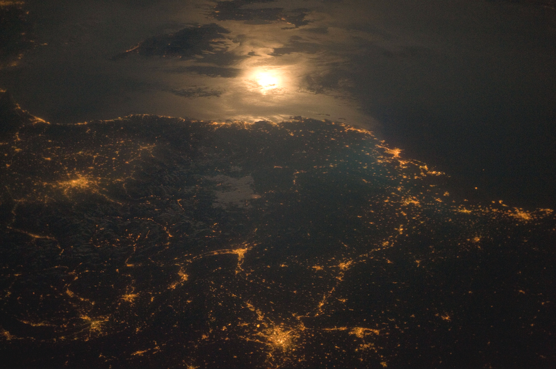 Image Credit: “City Lights, France-Italy Border (NASA, International Space Station Science, 04/28/10),” courtesy of flickr user NASA’s Marshall Space Flight Center. -