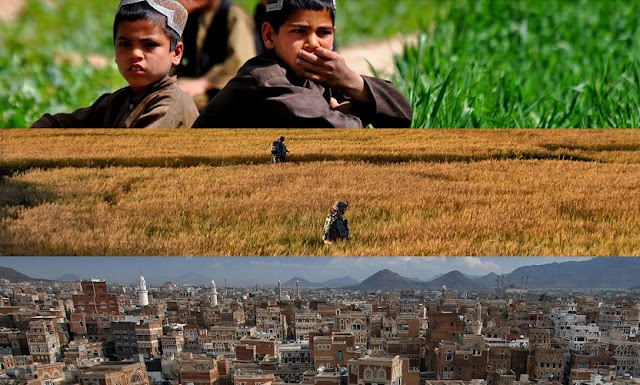 Photo Credit: “Human, Food, and Demographic Security” collage by Schuyler Null from “Children stop tending to the crop to watch the patrol” courtesy of flickr user isafmedia, “Combing Wheat” courtesy of flickr user AfghanistanMatters, and “Old Town Sanaa – Yemen 49” courtesy of flickr user Richard Messenger.