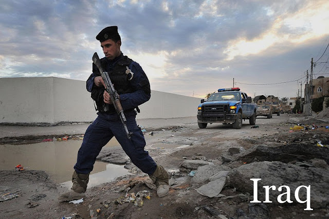 Photo Credit: Adapted from “An Iraqi policeman steps over trash and mud during a walking patrol” in the Rashid district of Baghdad, courtesy of the U.S. Navy and Wikimedia Commons.