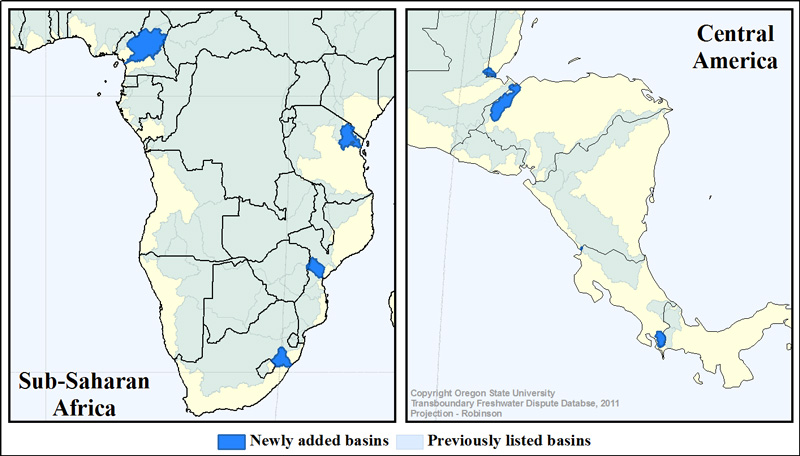 Thanks largely to improvements in digital elevation data over the last nine years, 13 new basins have been added to the Transboundary Freshwater Spatial Database, adding 501,000 km2 and an estimated 13.8 million new inhabitants to the world’s international basins, and raising the number of basins worldwide to 276. That total now includes five new basins in Central America, four in sub-Saharan Africa, two in Central Asia, and one in the South Pacific.