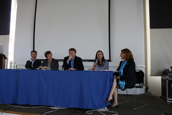 Photo Credit: Karl Hoffman, Astrid Zweynert, Dana Hovig, Julie Bernstein, and Peggy Clark speaking on the panel, courtesy of the Aspen Institute.