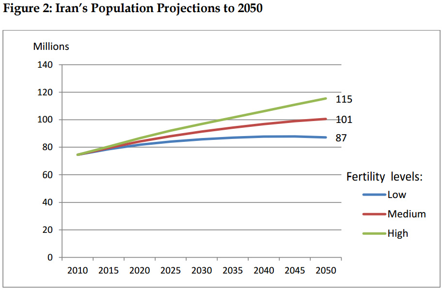 Sources: Brandies University, Iranian Ministry of Health and Medical Education, Population Reference Bureau, Statistical Center of Iran, UN Population Division.