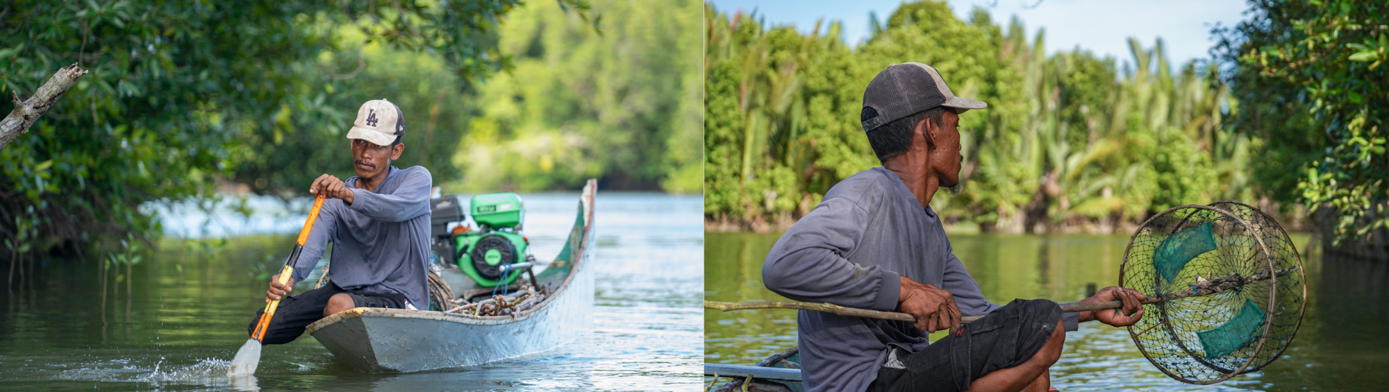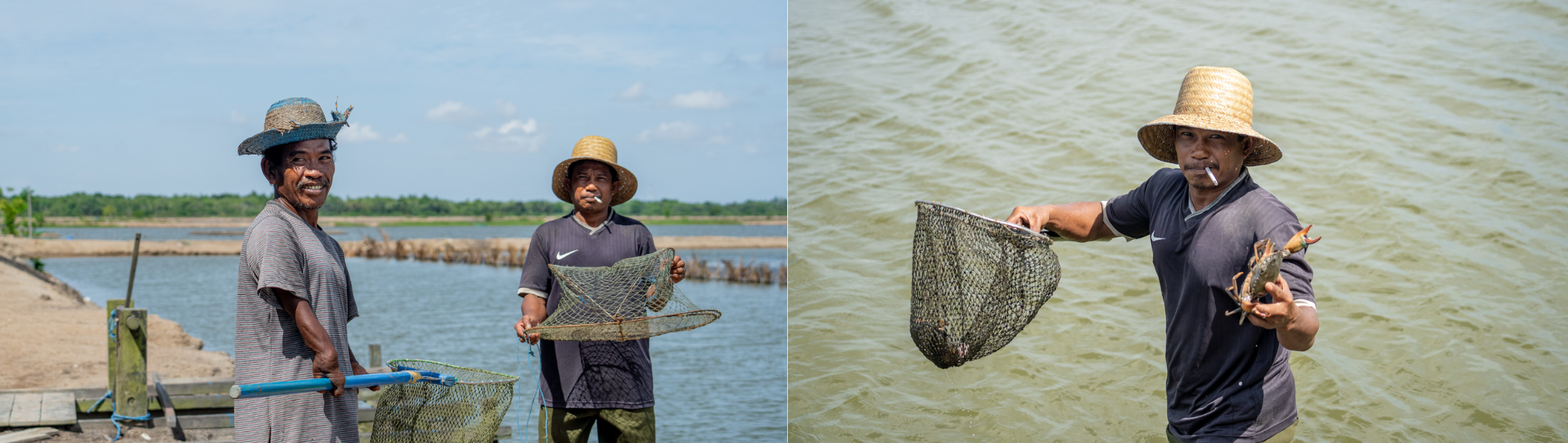 Switching to crabs has proved profitable for Andi. “In mangroves, one crab can weigh up to 1kg, outside mangroves, crabs are smaller,” he said. Despite making USD 34 a day from catching crabs, his take-home pay averages around USD 18 after costs, like bait and fuel.