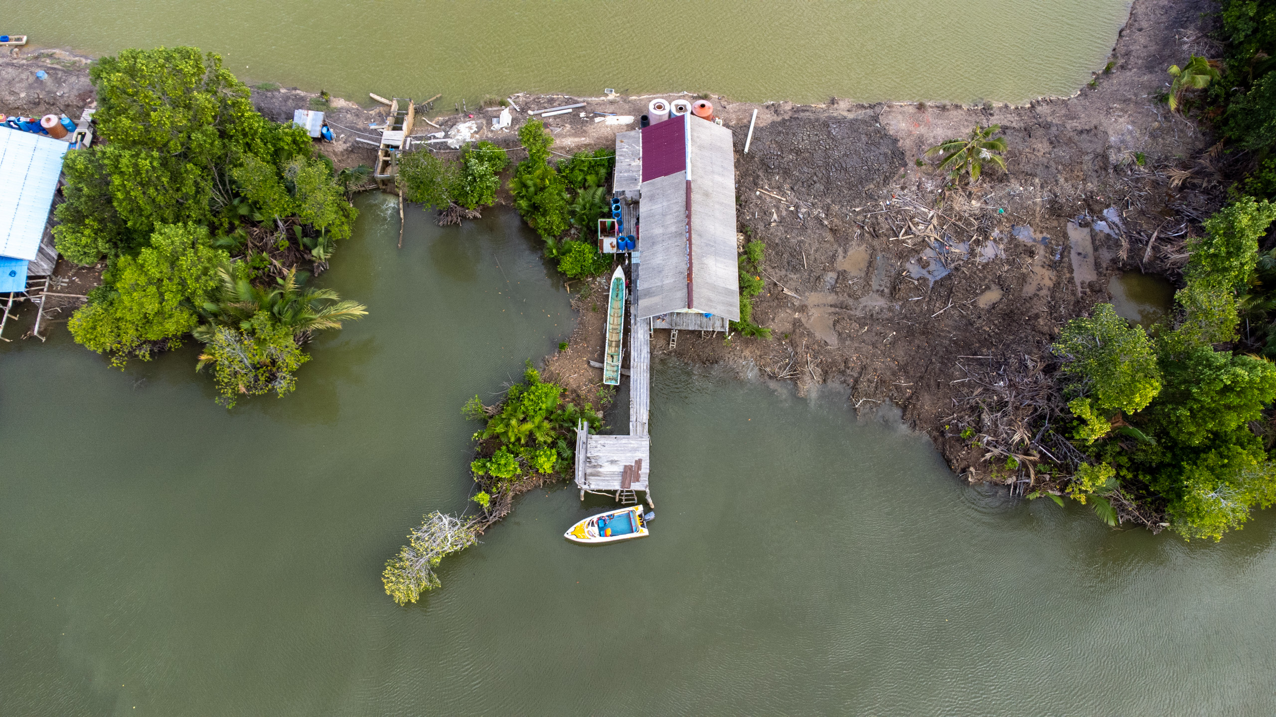 Left image: The traditional fishing village of Tani Baru is on a delta tributary that runs through thick mangrove forest, some of which is still intact