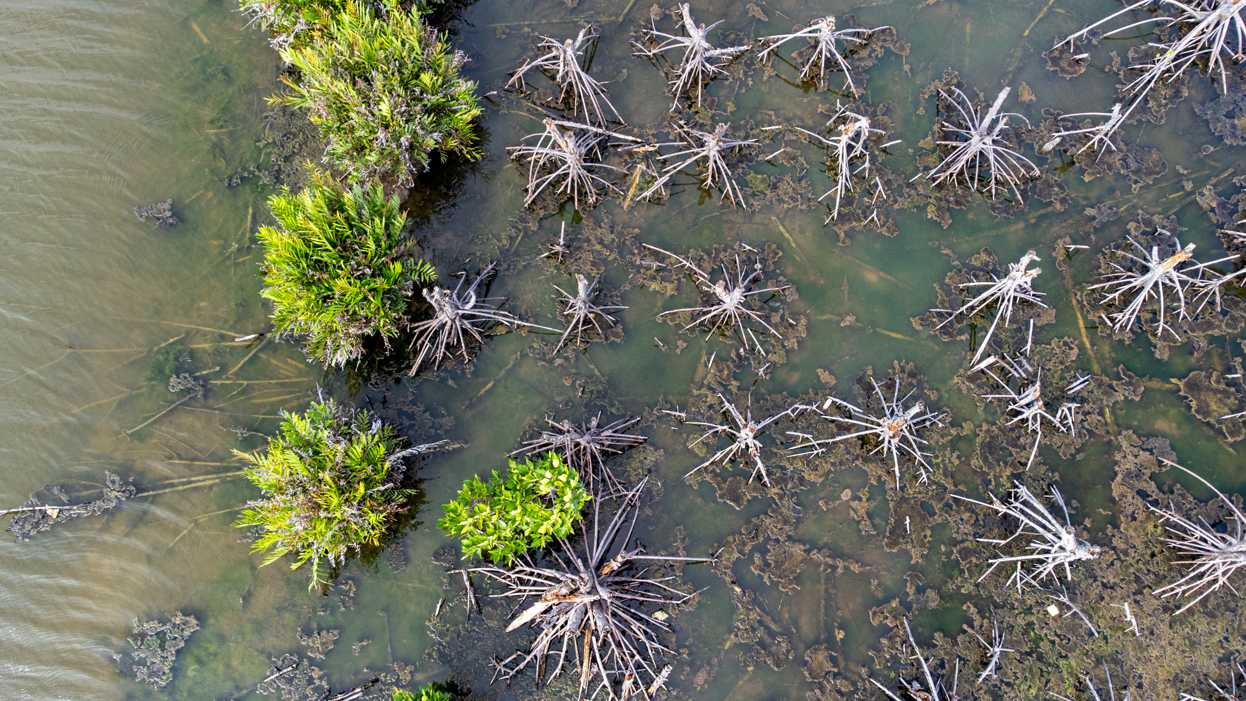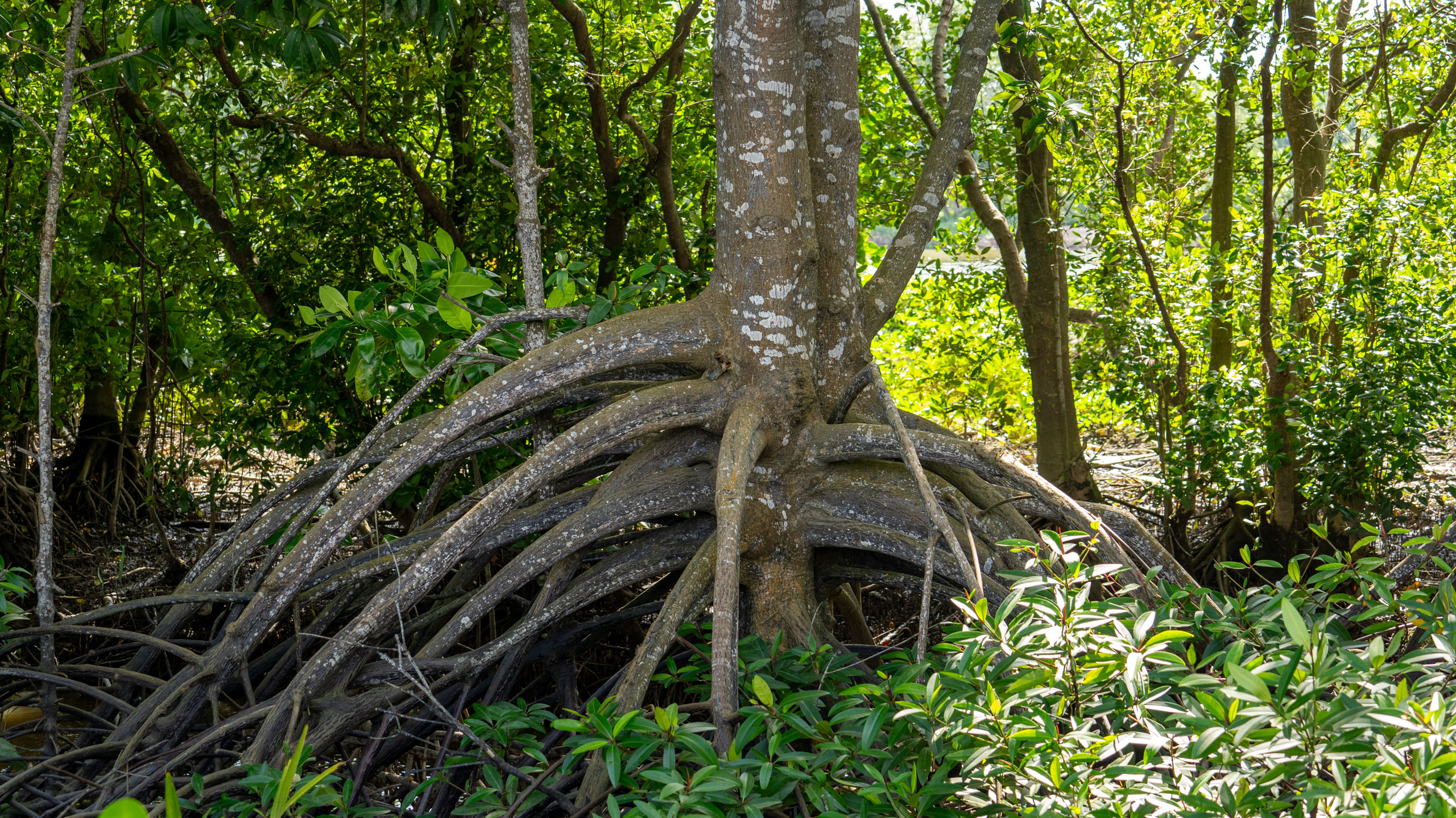 Mangrove roots trap sediment and prevent erosion. The calm, brackish waters around them also provide a safe nursery for fish