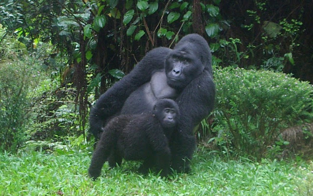 Photo Credit: Silverback mountain gorilla named Mwirima with a juvenille gorilla from the Rusguguar group near Bwindi Impenetrable National Park, and Ruth and her son in their shop in rural Uganda, courtesy of CTPH. -