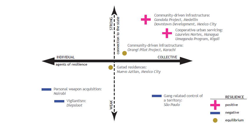 Physical space – what Davis referred to as “the weight of the spatial” – also played a very significant role in Urban Resilience. She and Tirman made the conscious decision to incorporate physical planning and design into their research, eschewing the more typical sectoral approach to violence and security.