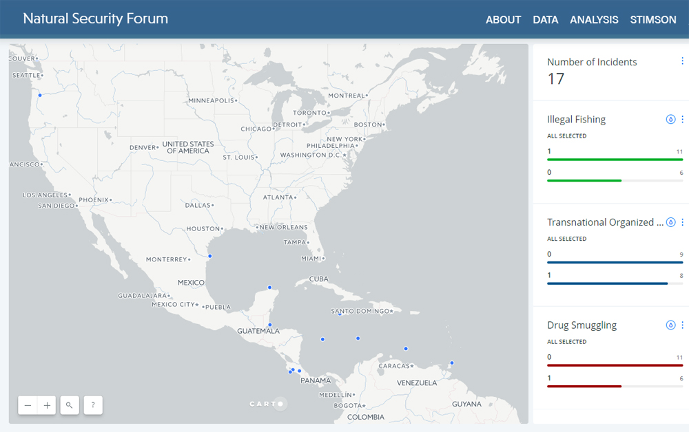 ›Organized crime, arms and drugs smuggling, and conflict often overlap with environmental crimes like illegal fishing. A new interactive database from the Stimson Center’s Environment Security program maps incidents of illegal, unreported, and unregulated (IUU) fishing with the aim to “illuminate and educate on the geostrategic security implications of environmental crime; foster the creation of a new and expanding community of natural security stakeholders; and change the terms of the conversation on environment crime, leading to innovation policy solutions.”