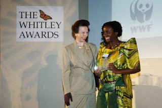 Photo: Gladys Kalema-Zikusoka receives the Whitley Gold Award from Her Royal Highness The Princess Royal. Courtesy of the Whitley Fund for Nature. -