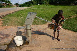 Photos: Top: Boy pumping water, Volta Region, Ghana. Bottom: Girl collecting water from lake, Volta Region, Ghana. Courtesy of David Bonnardeaux. -