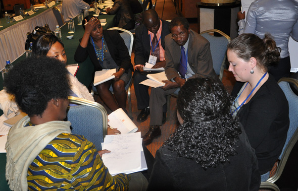 After these initial presentations, participants broke out into lively breakout groups to discuss these maternal health challenges in Kenya in detail. They reconvened in the afternoon in Nairobi to conduct a live video conference with a morning Washington, DC audience at the Woodrow Wilson Center. It was exciting to be involved in this format, watching as participants in Washington were able to ask questions live of the men and women involved in maternal health advocacy, research and programming directly on the ground in Kenya. It was clear the excitement existed on both sides of the Atlantic as participants in Nairobi were able to directly project their concerns and hopes for the future of maternal health in Kenya across the ocean through the use of video conferencing technology.